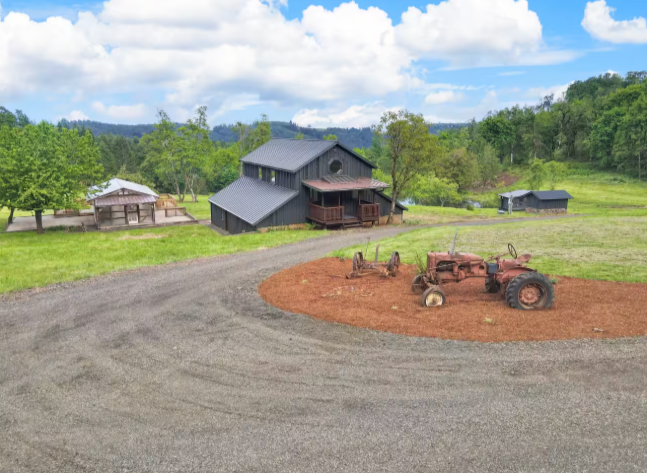 387 акрів землі поділені на 5 ділянок, на яких розташовані кілька будинків та господарських будівель. Головний будинок після ремонту має площу понад 480 квадратних метрів. Перероблена стодола має паркетну підлогу, ванну кімнату, кухню, пічку та патіо з теплицею, що виходить на луки.