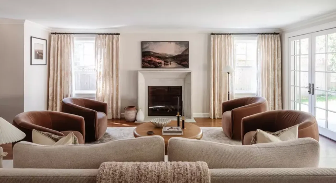 Багато камінів є вишуканими центрами уваги в будинку. Щоб підтримувати цілісний та елегантний естетичний вигляд вітальні, бажано, щоб навколишній декор був стриманим. Поставивши біля каміна дві декоративні посудини різного розміру, можна підсилити візуальний інтерес і глибину простору, створивши привабливу і вишукану атмосферу.