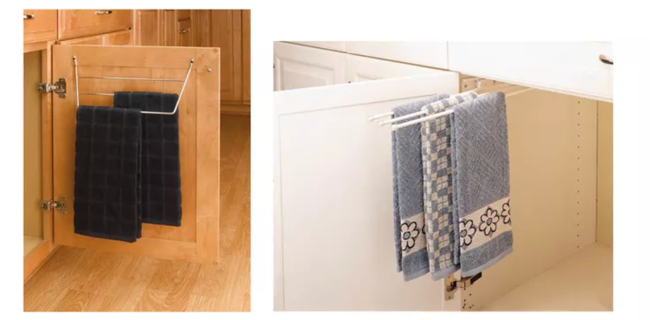 Якщо ви така людина, якій не подобається, коли рушник для рук видно на відкритій поверхні, є варіанти. Найпростіший – прикріпити рушникосушки до задньої частини дверцят шафи. Більшість людей вирішує робити це під раковиною, оскільки вона зручно розташована там, де найчастіше потрібні рушники.
