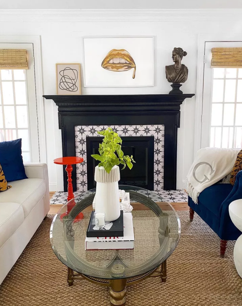 Ця стратегія особливо добре працює в нейтральному просторі, де потрібен фокус або відчуття драматизму, яке досягається шляхом введення контрасту та зіставлення. Ця ж формула може працювати для великих декоративних предметів, таких як позолочене дзеркало або вінтажний килим, щоб "закріпити" сучасну вітальню.
