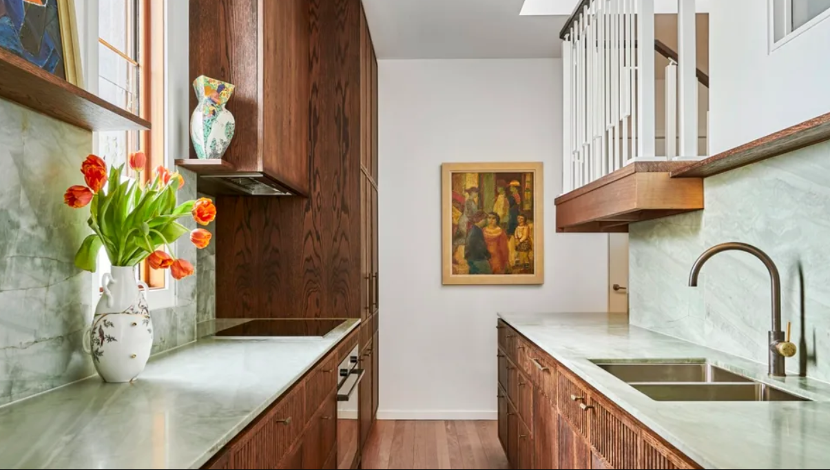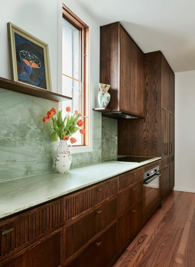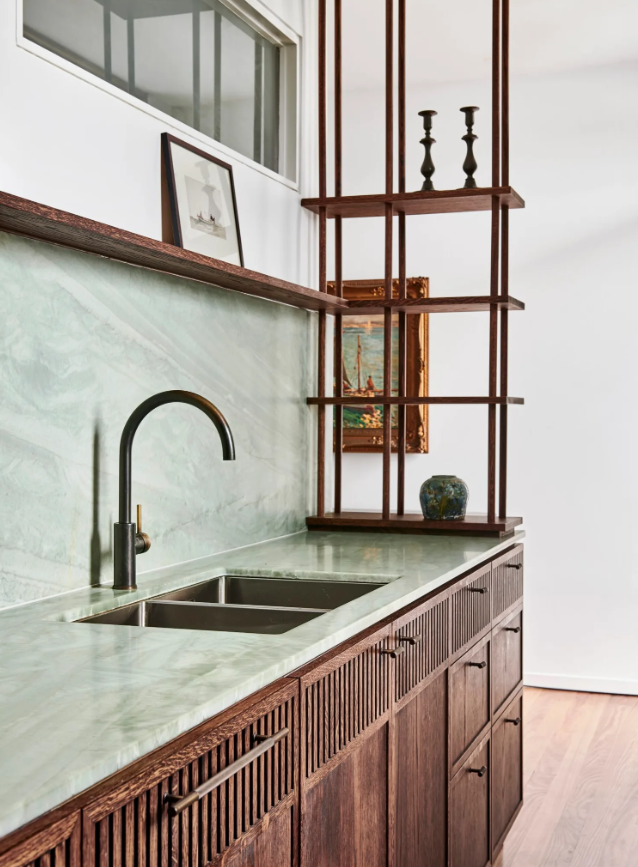 Дизайнерка інтер'єру вдалася до використання світло-зеленого кварциту на стільниці та фартусі, передає 24 Канал із посиланням на Home Beautiful.