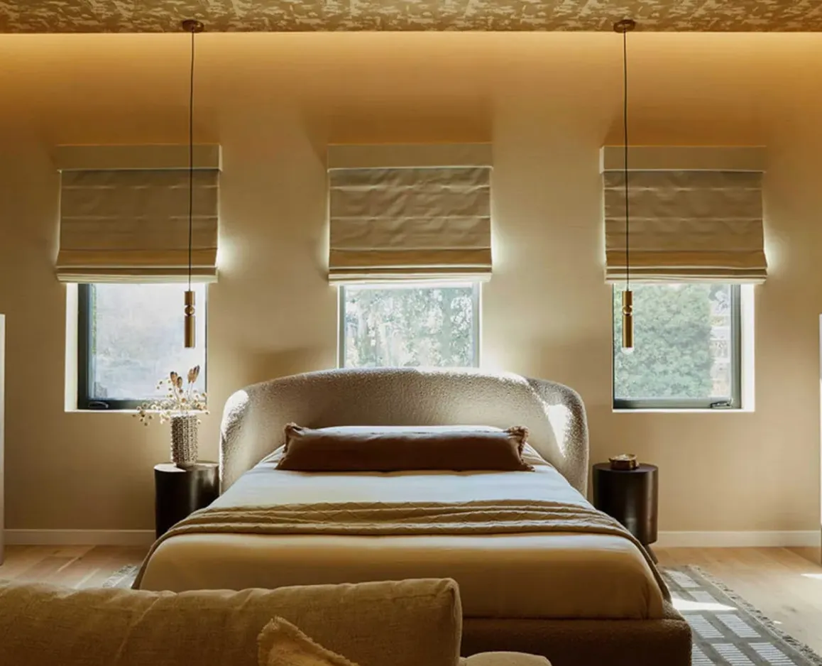 Фахівці кажуть, що якщо у вашій спальні багато природного світла, можна використовувати гірчичний чи теракотовий кольори. Ці тони процвітають під сонячним світлом і створюють теплий, привабливий простір. Для кімнат з меншою кількістю природного освітлення дотримуйтеся більш м’яких відтінків, таких як зелена шавлія або лаванда, щоб зберегти простір легким і повітряним.