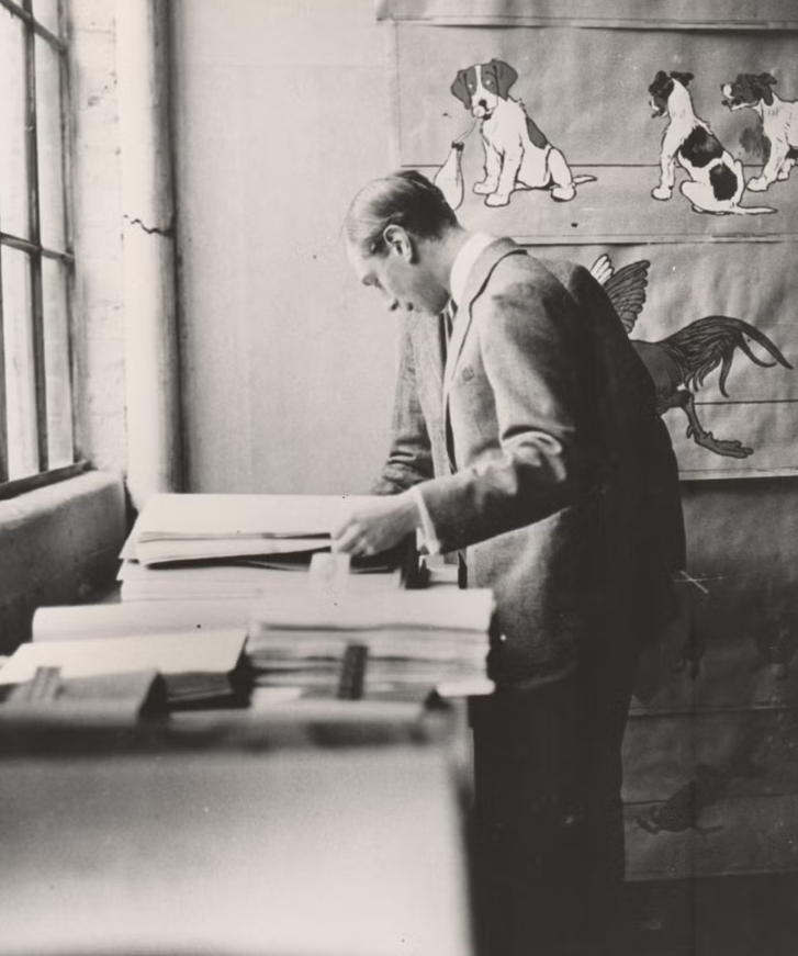 Король Георг відвідує виробничі потужності Сандерсона в Чізвіку в 1924 році / Фото Sanderson
