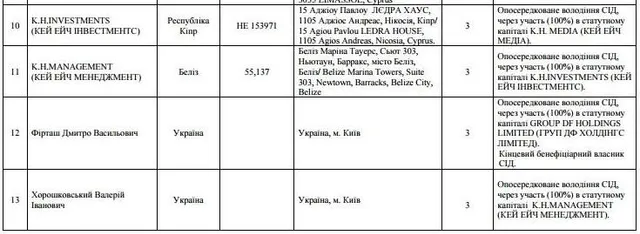 Про це йдеться в опублікованій структурі власності телеканалу "Інтер".