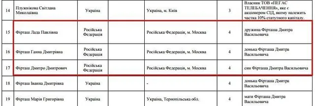 Інформація про них вказана у відомостях про пов'язаних осіб у структурі власності телеканалу. У документах вказано, що громадянкою Росії є і дружина Фірташа Лада.
