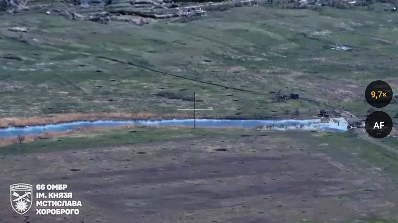 Ще 9 квітня бійці 66 ОМБр імені князя Мстислава Хороброго знищили російську установку для розгортання тимчасових доріг на базі КАМАЗ. Комплекс перекрив проїзд через річку Чорний Жеребець. Зараз, під час "великоднього перемир'я" військові помітили, що окупанти готуються до проходження цією дорогою та прибирають з переправи рештки знищеної техніки.