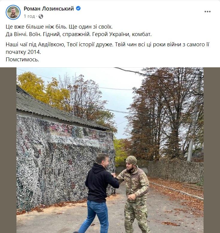 Наш підрозділ зветься "Вовки Да Вінчі" саме тому, що ми завжди йшли за ним у бій. Він був для нас найкращим командиром, побратимом, лідером і взірцевим націоналістом. Про його бойовий шлях промовисто говорить факт, що "Да Вінчі" став першим добровольцем і наймолодшим командиром, котрий прижиттєво отримав звання "Героя України". За Україну в 27 років він віддав своє життя,
