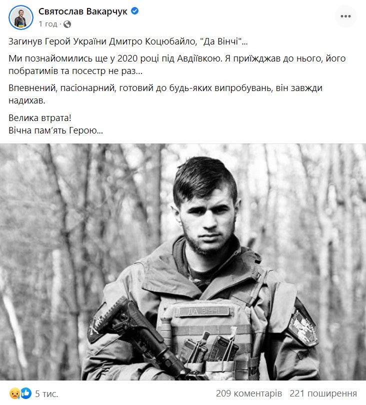 Зазначимо, що згадали Героя не лише діячі України. Так, французький військовий репортер Кирило Амурський (Cyrille Amoursky), знайомий з "Да Вінчі", подякував захиснику за все, що він зробив для держави. А також підкреслив, що Україна цього не забуде.