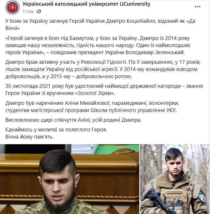 До теми У бою загинув Герой України "Да Вінчі" Дмитро Коцюбайло