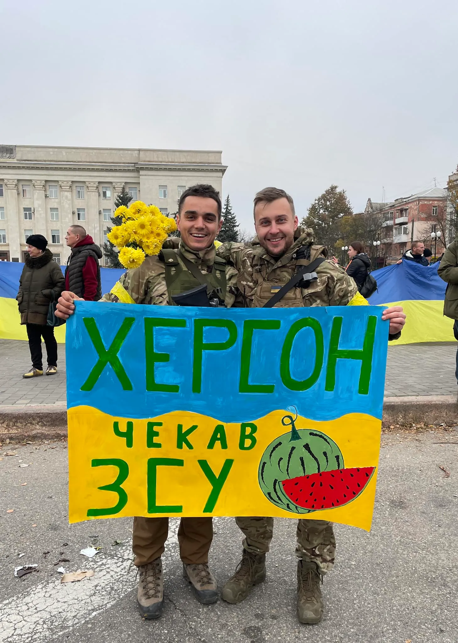 Дмитро Пащук (ліворуч) з побратимом у вільному Херсоні / Фото з фейсбуку Дмитра