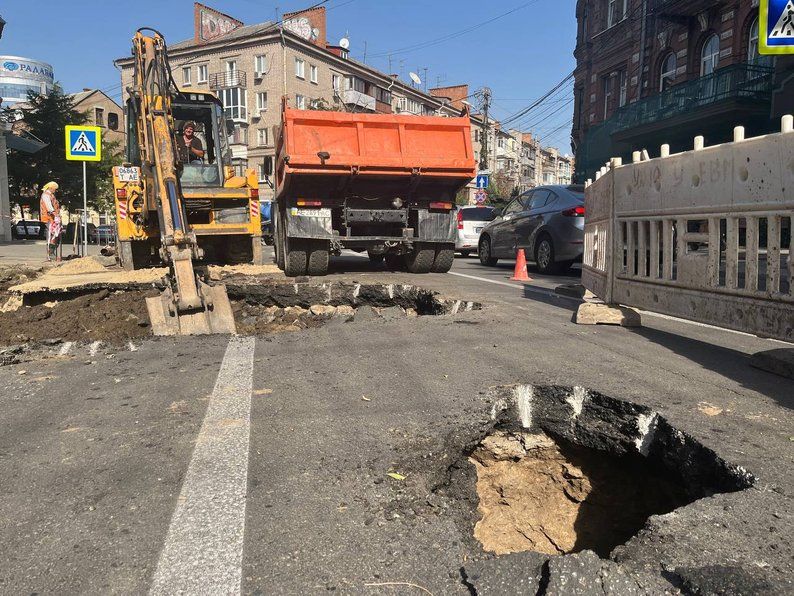 Провалля у центрі Дніпра: фото "Дніпроводоканал" та Суспільне