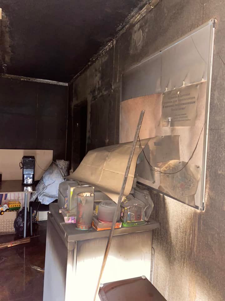 Наслідки пожежі у шелтері / Фото з соцмереж Олега Браславеця