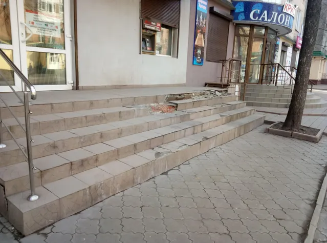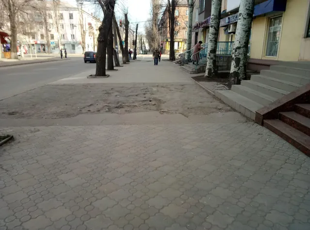 Власники не турбувалися про благоустрій тротуару навколо і клали плитку лише напроти своїх сходів. Сьогодні ті самі бутики зустрічали мене такими ж гордими сірими сходами, але подекуди зі знищеною плиткою.