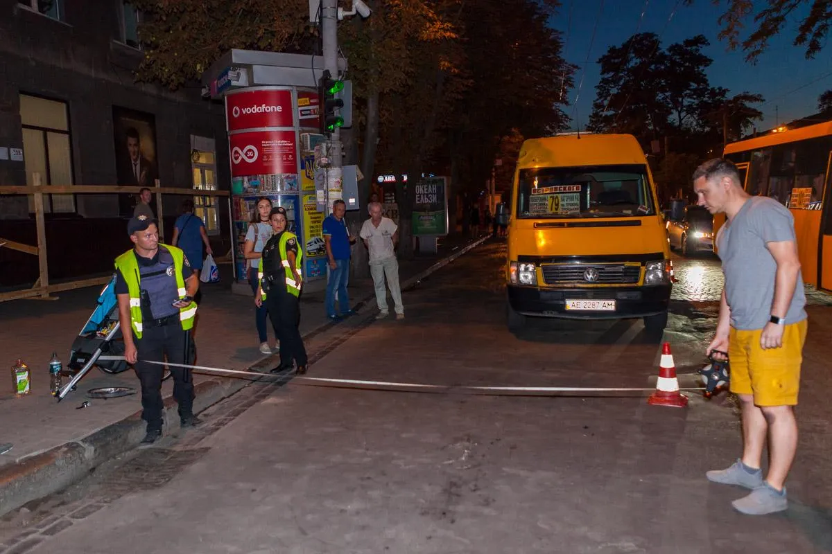 "На зелений сигнал дорогу переходили ми з дружиною і троє дітей. Маршрутка їхала по проспекту у другому ряду і збиралася повертати праворуч, на вулицю Шмідта. Переїхала візок з немовлям, ще одна дитина потрапила під колеса. Старшому зроблять рентген, бо у нього пошкоджені ноги та інші травми, це зараз уточнюється в лікарні", – розповів батько постраждалих дітей Андрій.