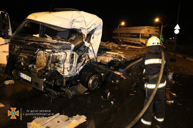 У Дніпрі зіштовхнулись 4 вантажівки / Фото ДСНС Дніпропетровщини