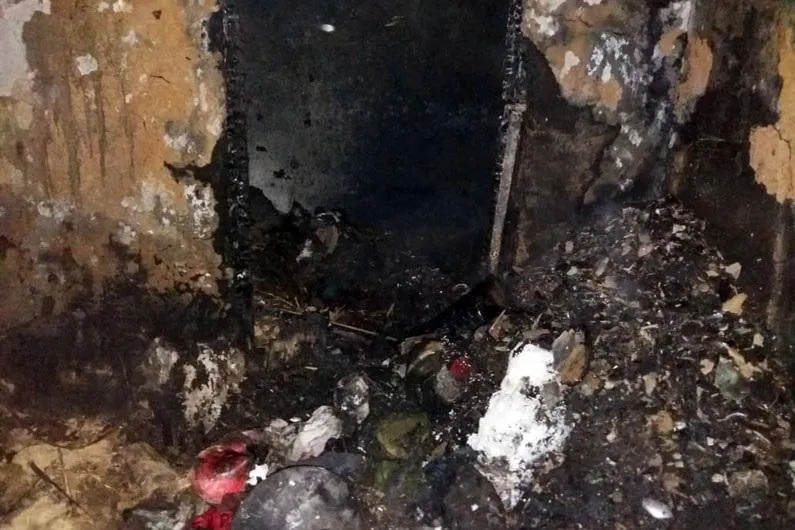 - Прибувши на місце, вони з'ясували, що горів дах, домашнє майно та сміття всередині 1-поверхової споруди.