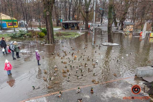 Парк "Глобы" в Днепре затопило, утки плавают по тротуару: видео