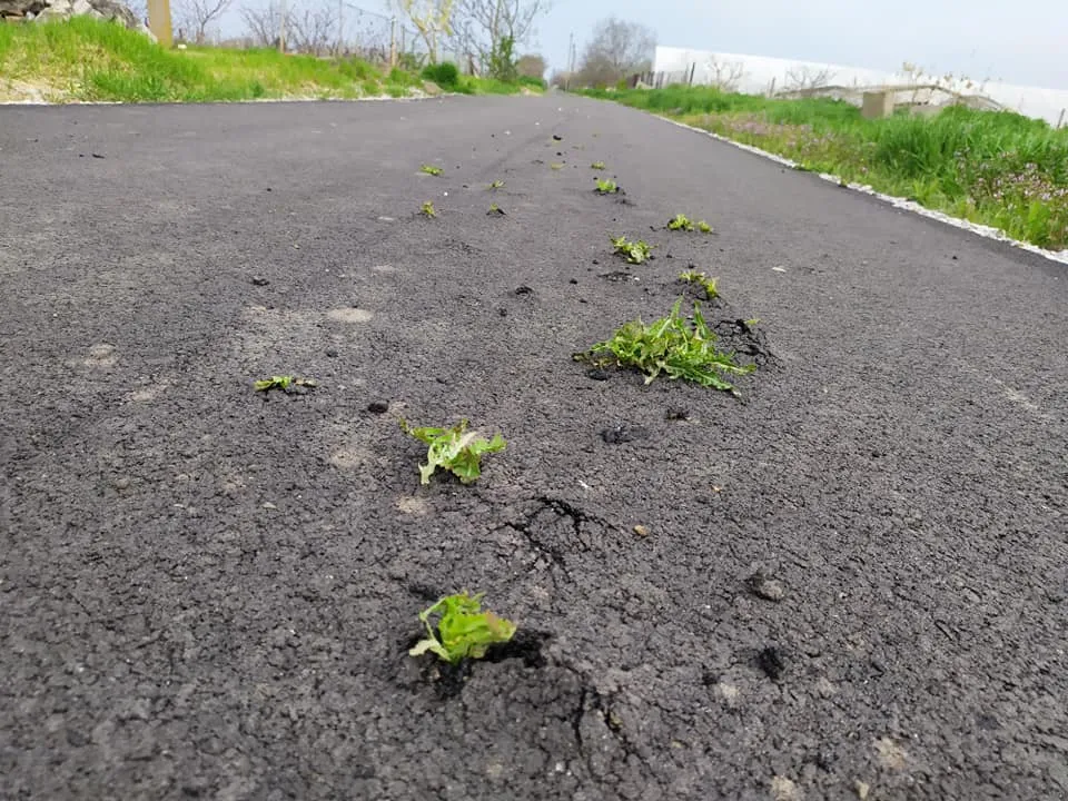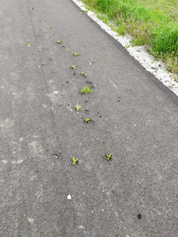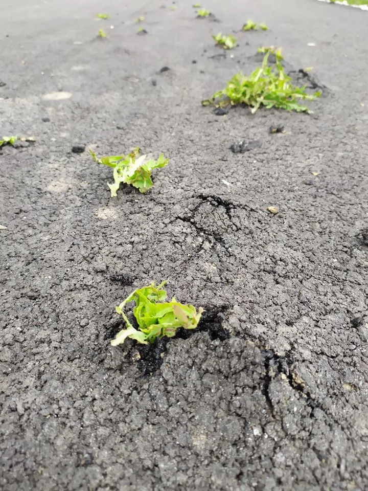 Большинство из растений там уже достаточно большие. А в некоторых местах асфальт только начал трескать.
