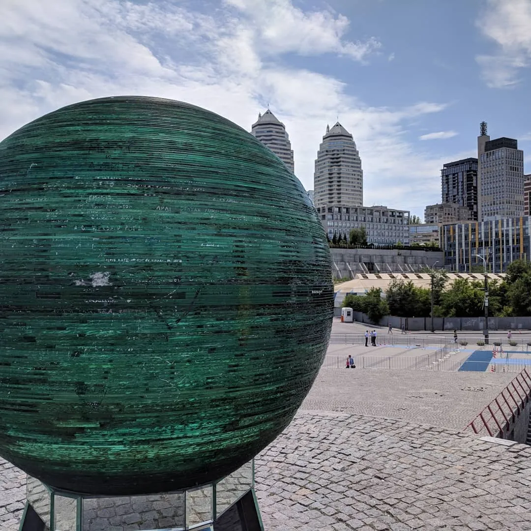 Интересно то, что шар создали из стеклянных дисков и в проемах между ними часто можно увидеть небольшие бумажки – на них жители и гости города делятся своими мечтами.
