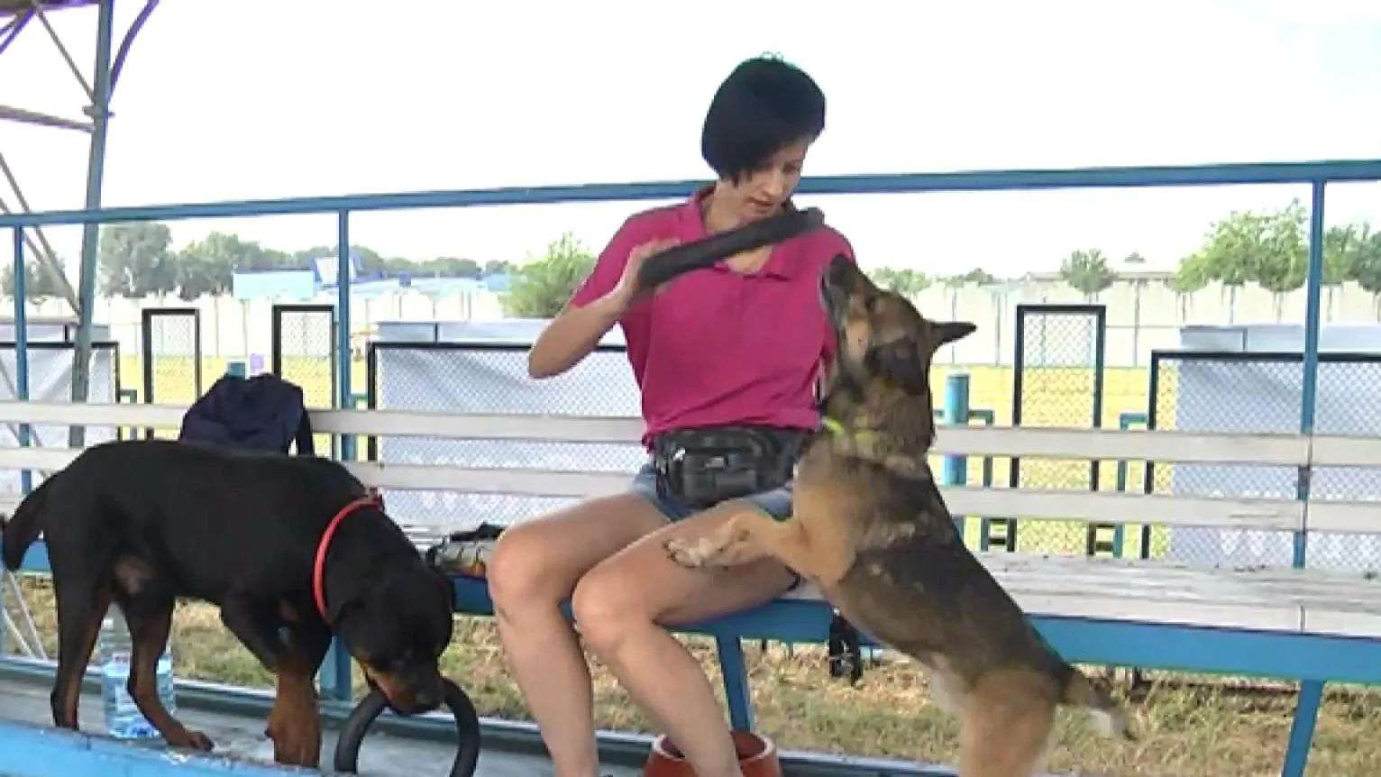 Маленького пса Джета подобрали его на улице. Пёс беспородный, воспитывать его сложно. Второй пес – ротвейлер, будет выступать уже в категории больших собак. Ксения говорит: не использует никаких специальных программ для тренировок.