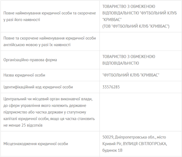 Эту же информацию подтверждает и запись в государственном реестре юридических лиц. Вместе с Константином Караманицем совладельцем команды является экс-тренер "Кривбасса" Сергей Мазур.