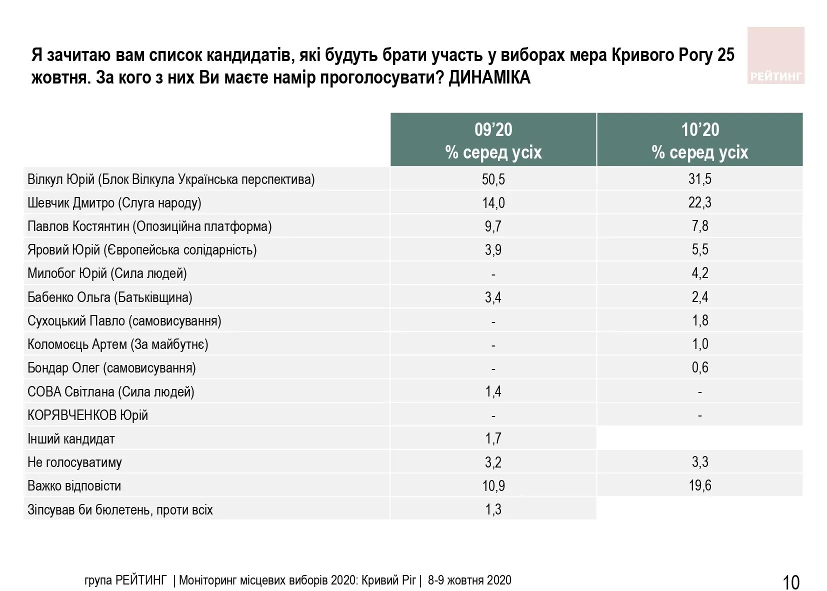Водночас Дмитро Шевчик різко наростив підтримку: з 14,0% у вересні до 22,3% у жовтні (дані серед усіх опитаних)
