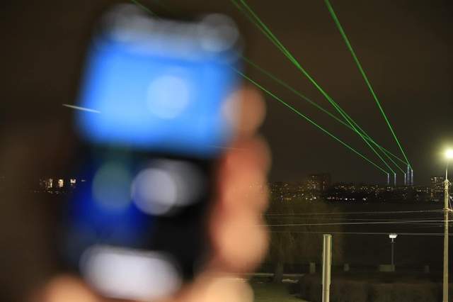 У Дніпрі підсвітили лазерами та світильниками заводські труби / Фото Expolight