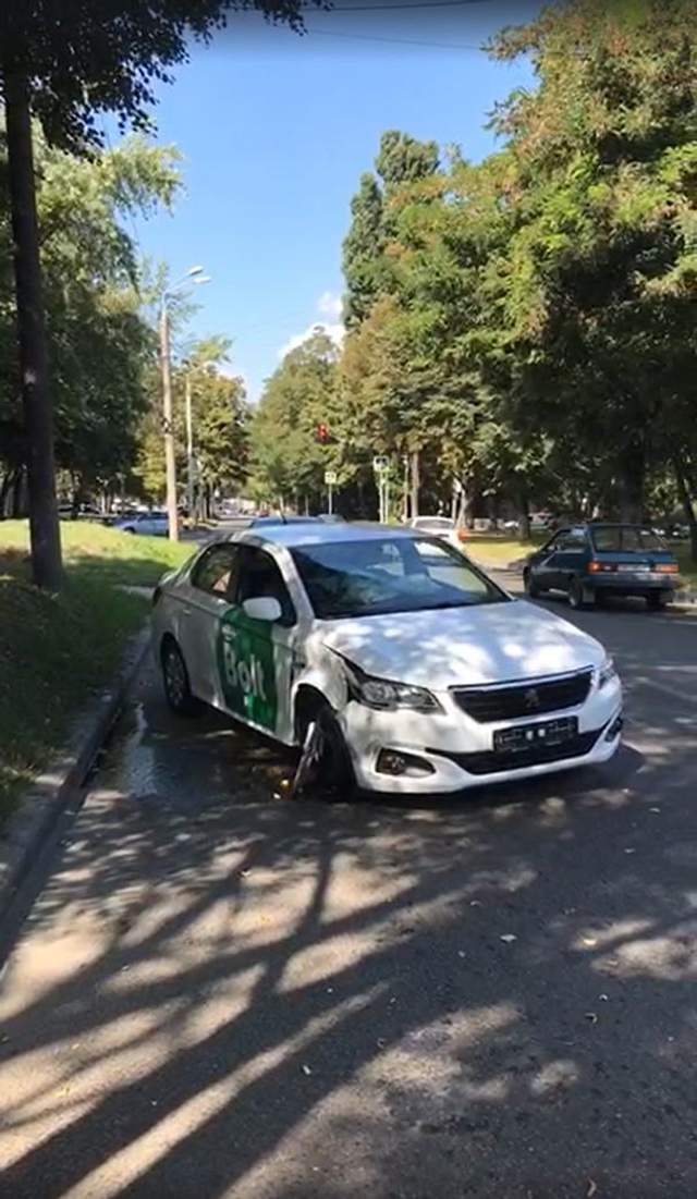 Теж у місті Провалилося під асфальт: у Дніпрі рятували авто таксі Uklon