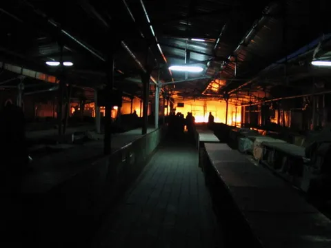 Клуби диму піднімалися з рядів позаду критого ринку.
