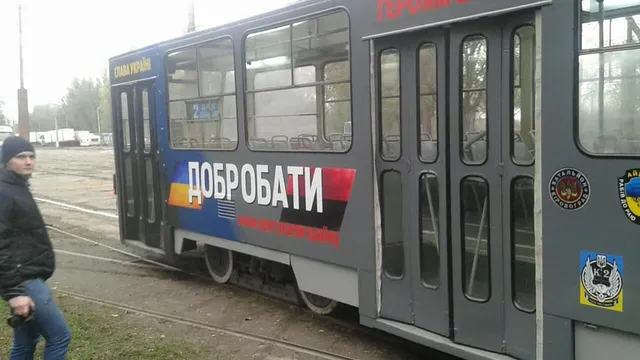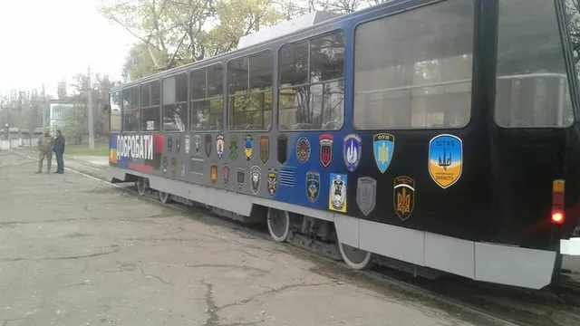 Трамвай прикрасили емблемами добровольчих батальйонів