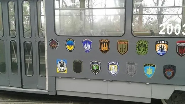 На трамваї розмістили майже три десятки логотипів добробатів