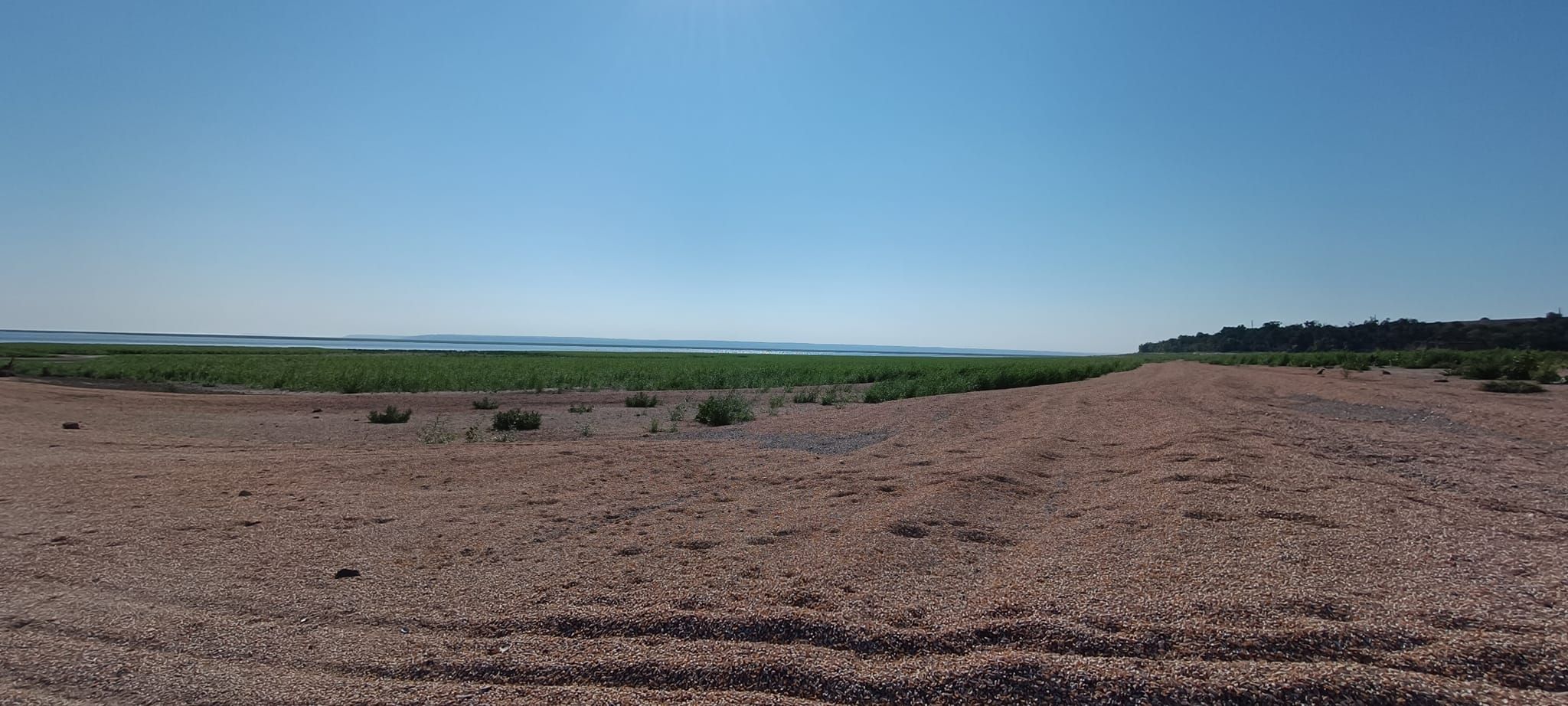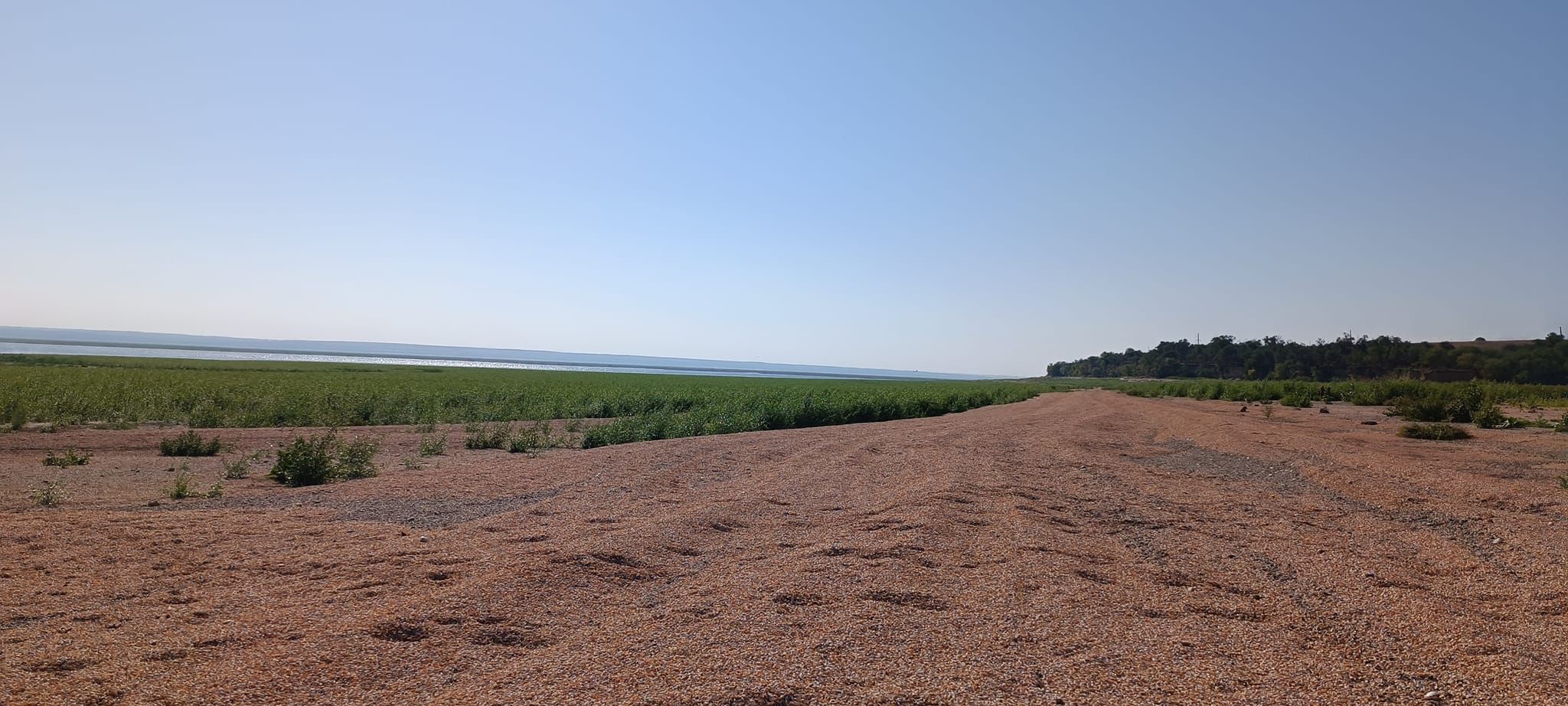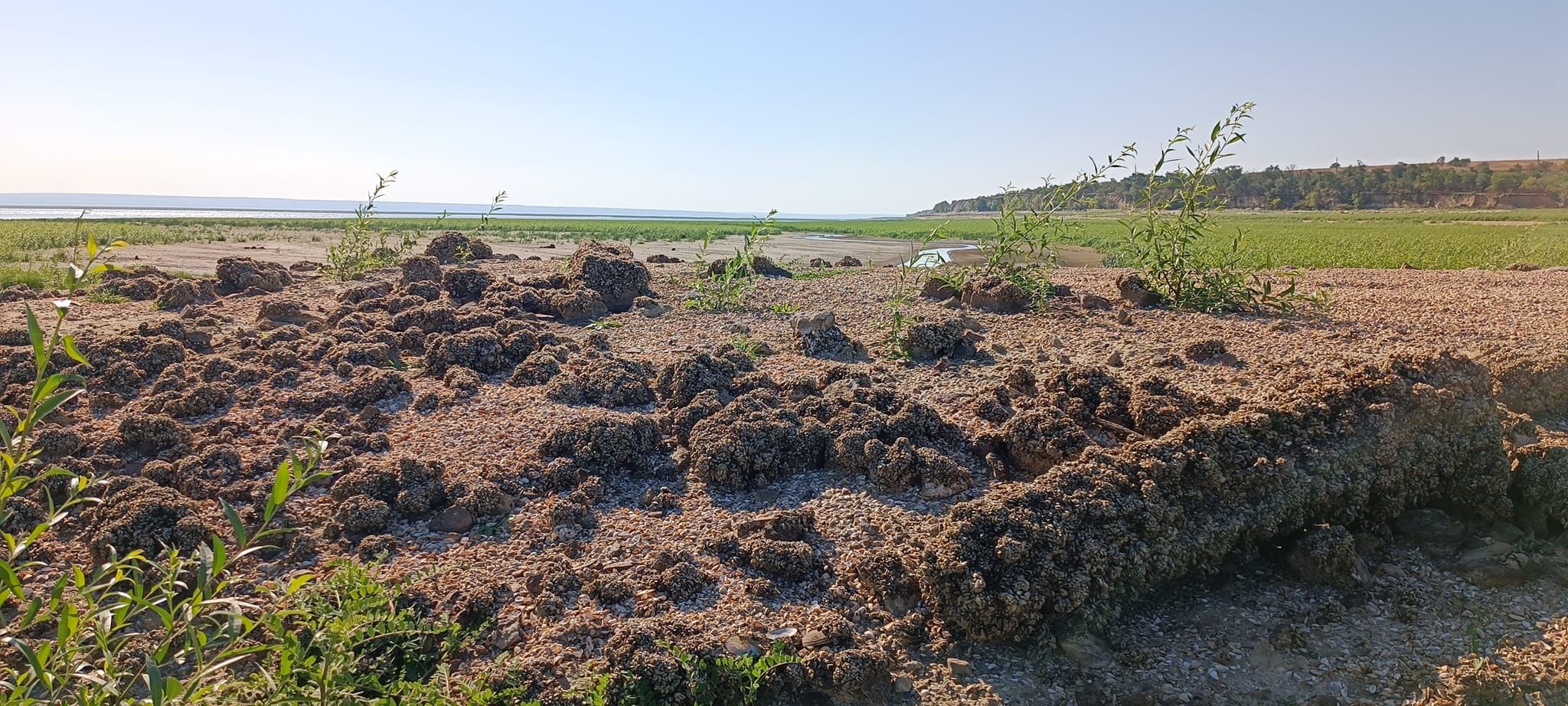 Фотограф показав, який вигляд має дно водосховища, зокрема, там вже подекуди заросла густа трава, подекуди – залишились залишки молюсків.