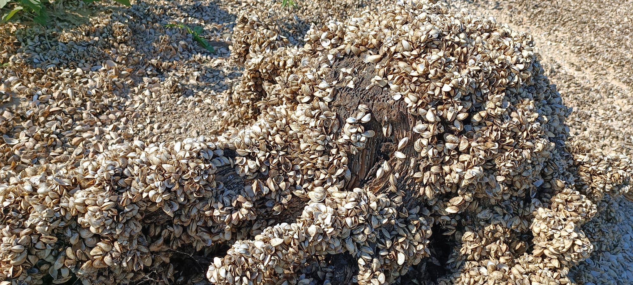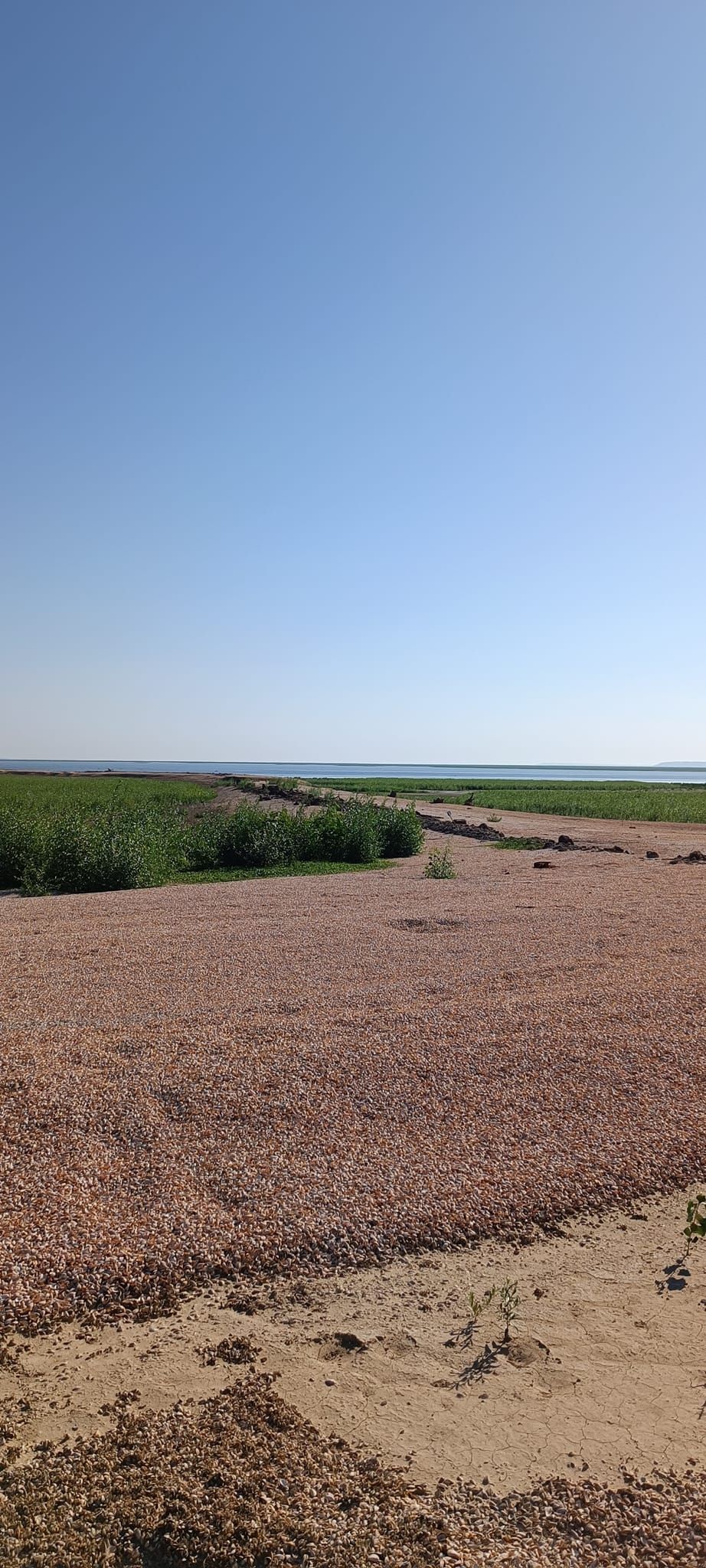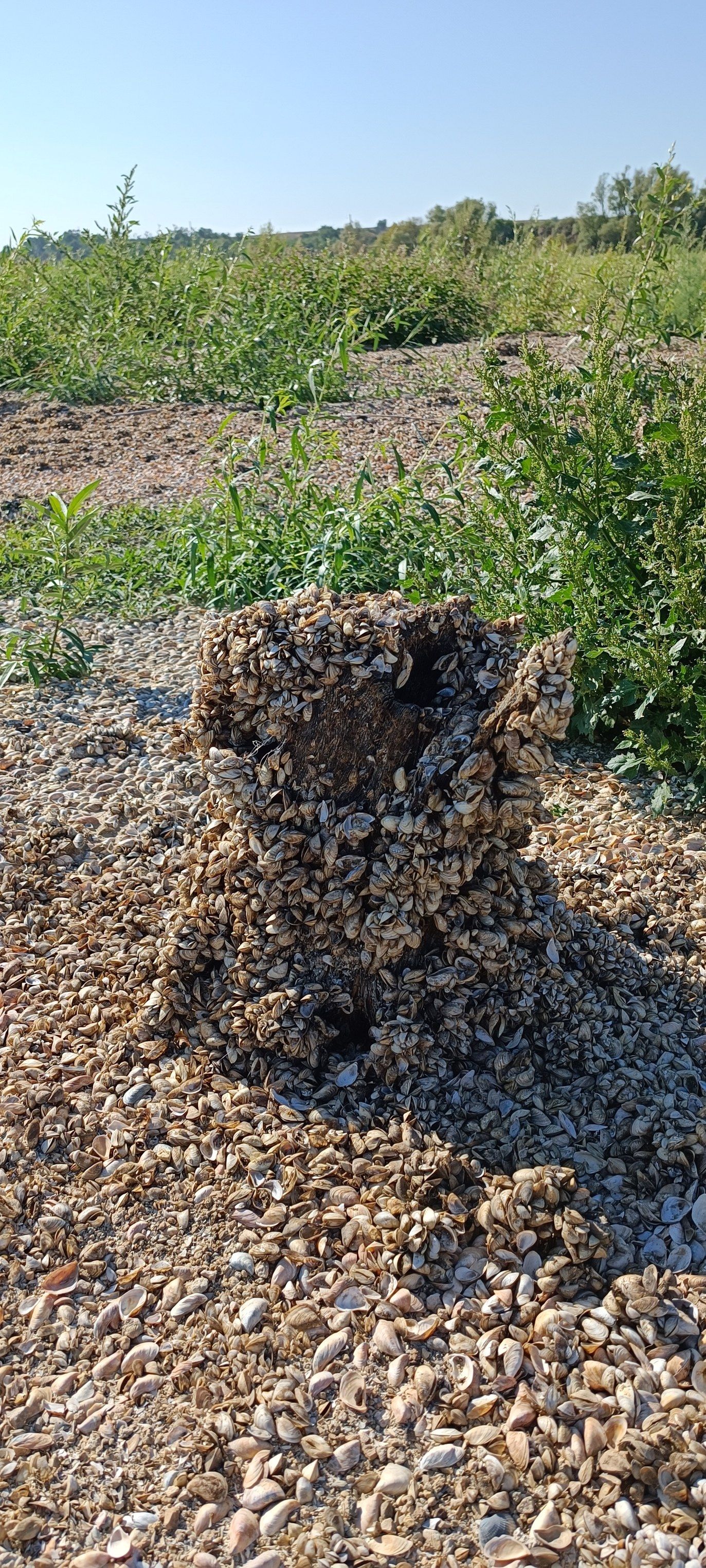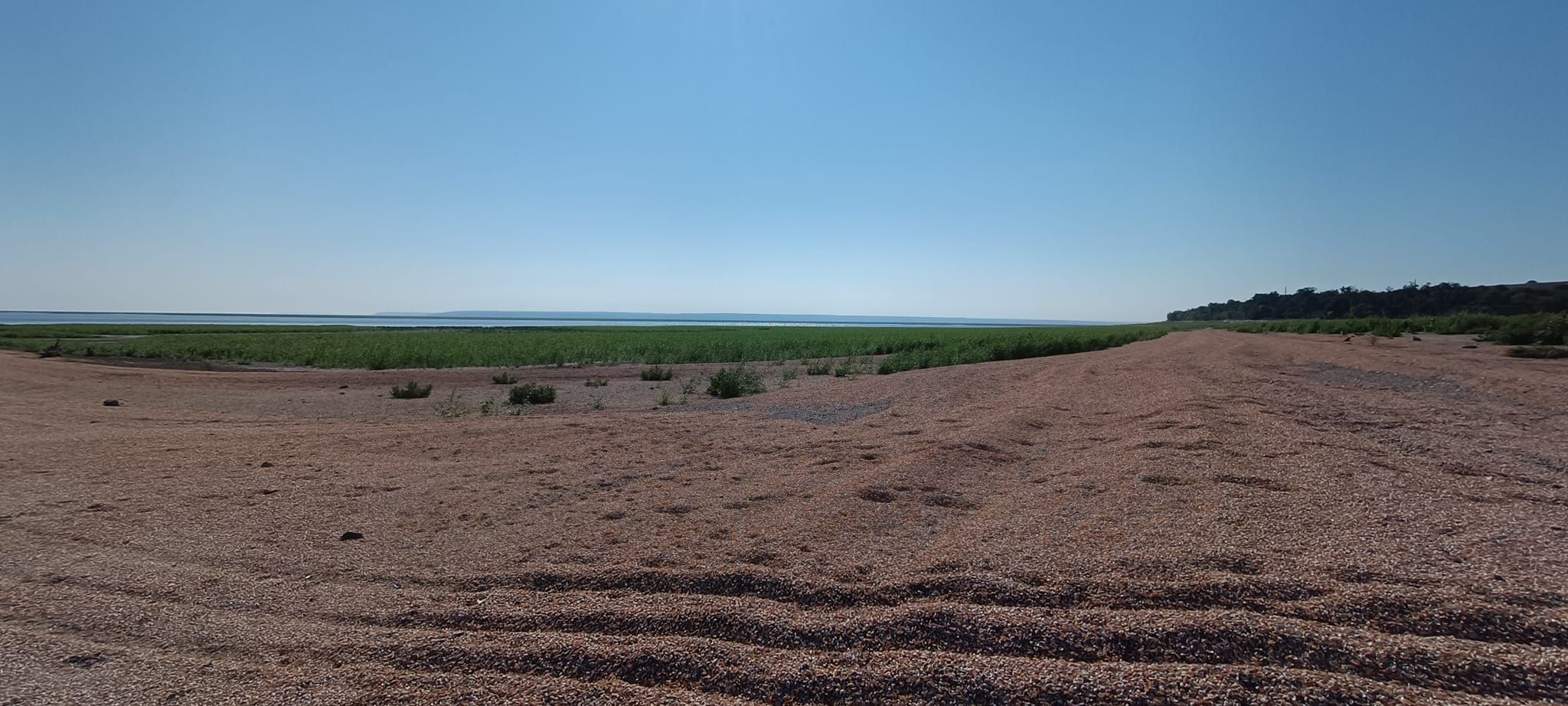 Фотограф показав, який вигляд має дно водосховища, зокрема, там вже подекуди заросла густа трава, подекуди – залишились залишки молюсків.