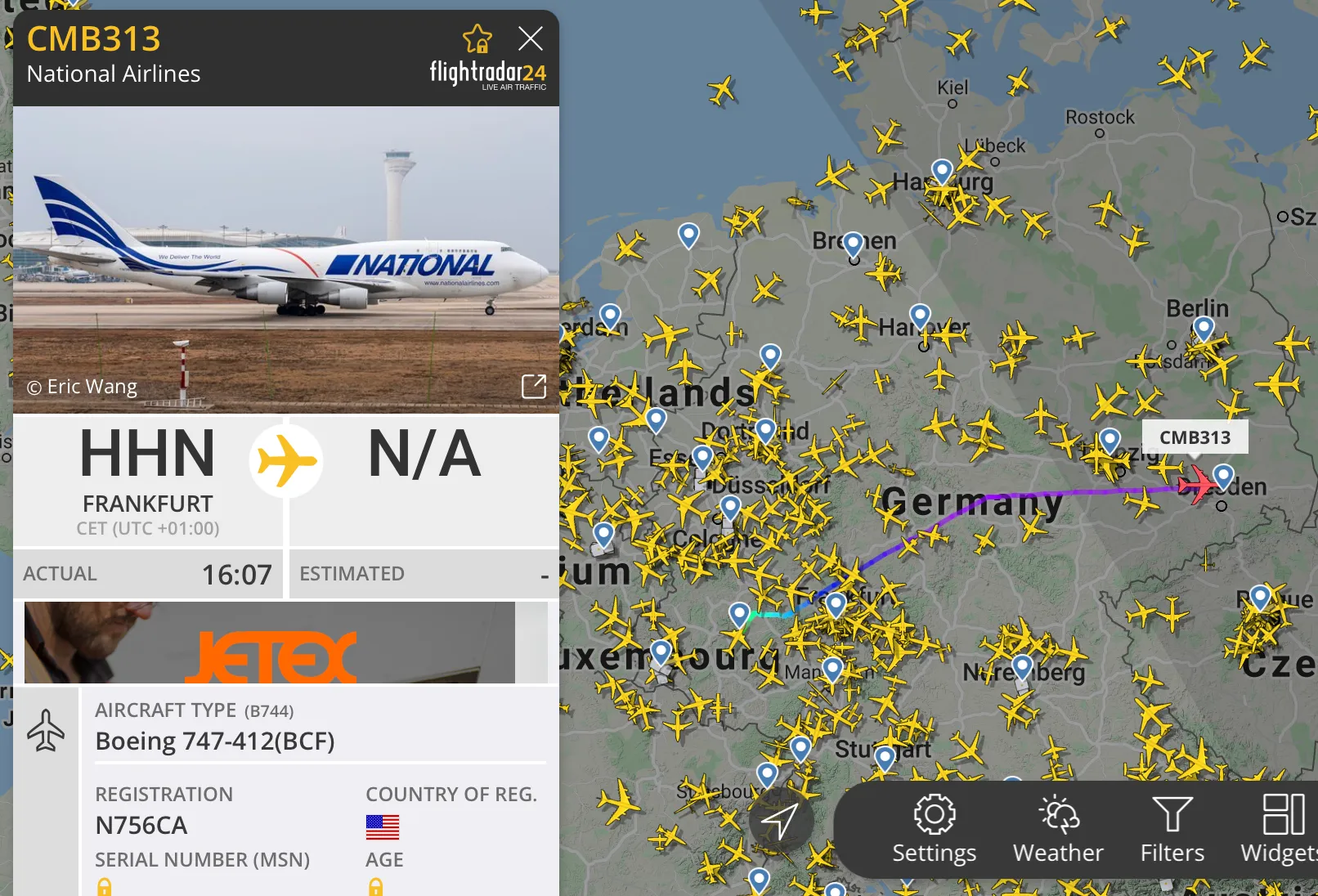 Озброєння завантажили на американський борт N756CA. Він вже вилетів з авіаційної бази Військово-повітряних сил США, розташованої у Каліфорнії. Саме це повітряне судно доставляло напередодні в Україну й першу партію військової допомоги. Згідно з інформацією Flightradar24, станом на 17:45 літак все ще у дорозі – над Дрезденом, тобто над територією Німеччини, але вже наближається до Польщі.