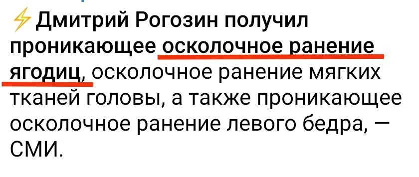 Поранення Рогозіна / Скриншот з телеграм-каналів