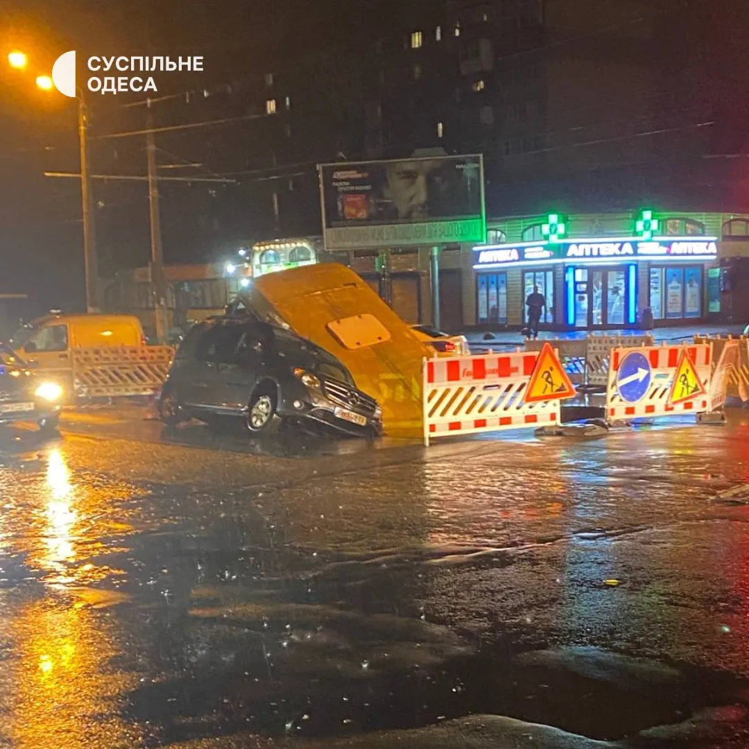 В Одесі під час зливи 30 вересня провалилися авто та маршрутка