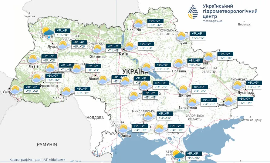 Погода на 12 жовтня 2025 року / Карта Укргідрометцентру