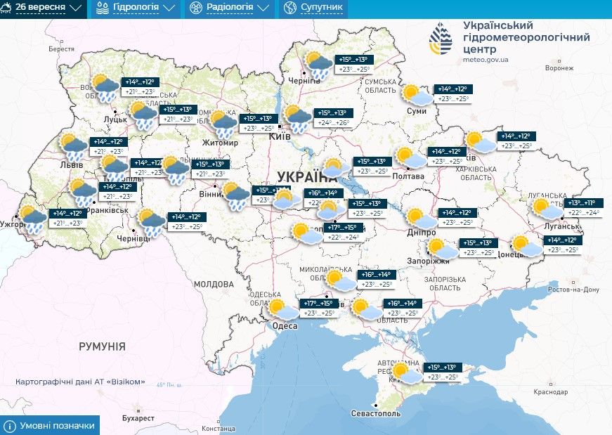 Прогноз погоди на 24 – 26 вересня / Скриншоти з Укргідрометцентру