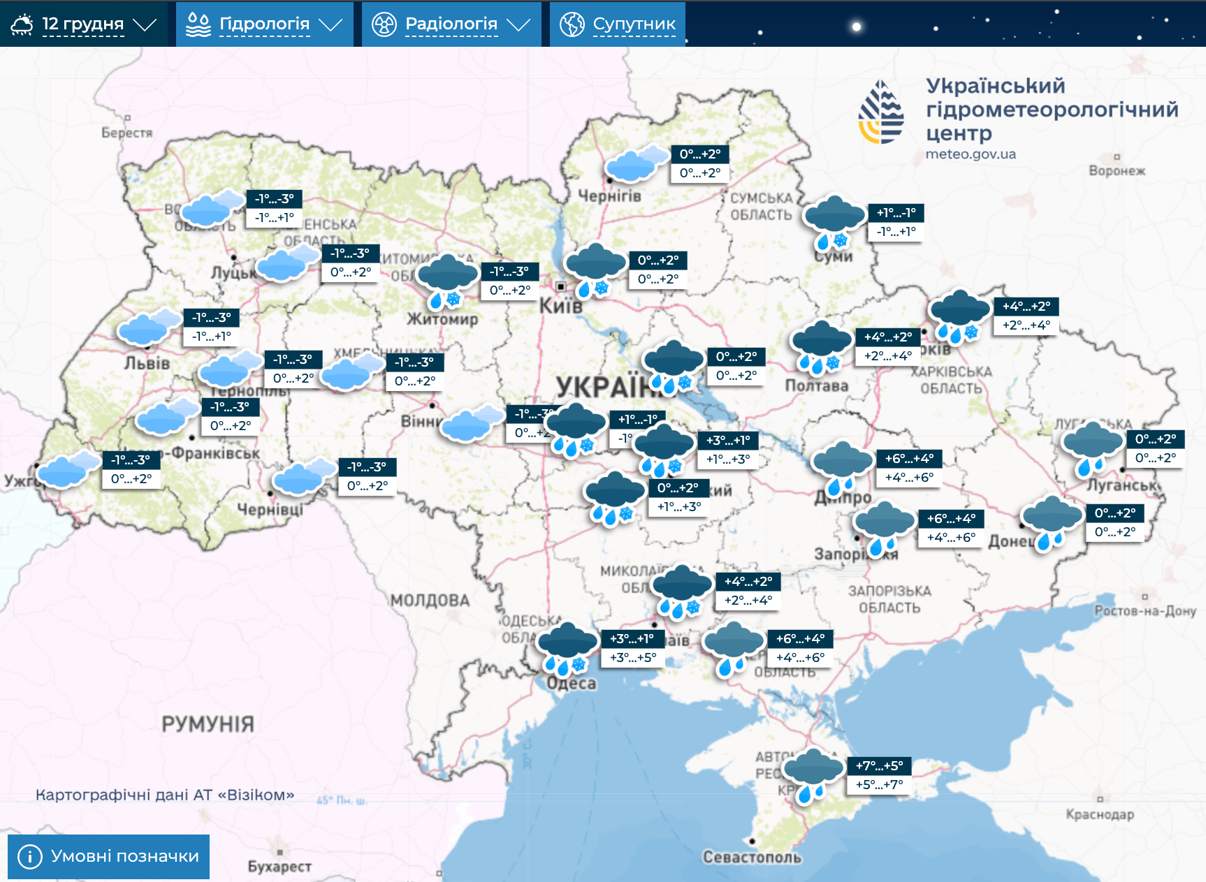 Погода на 8 – 12 грудня / Скриншот з Укргідрометцентру