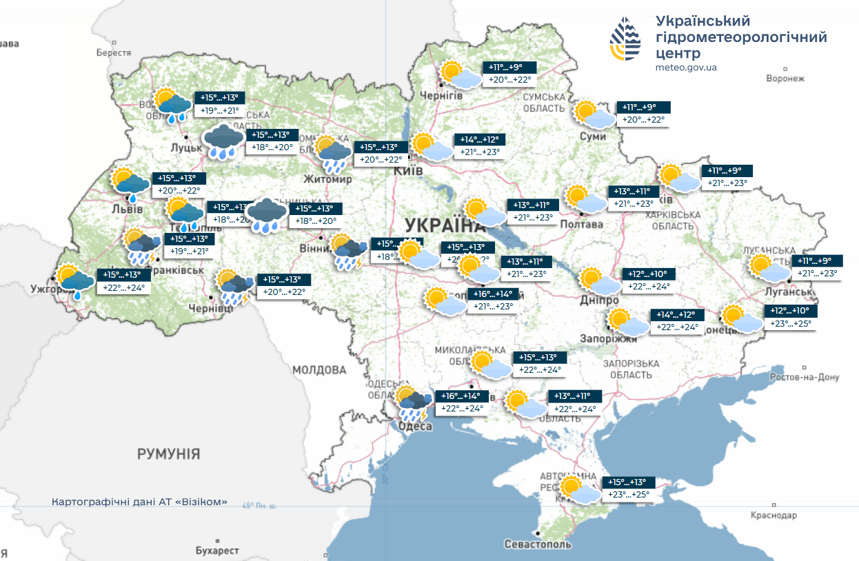 Про це повідомляє 24 Канал з посиланням на Укргідрометцентр.