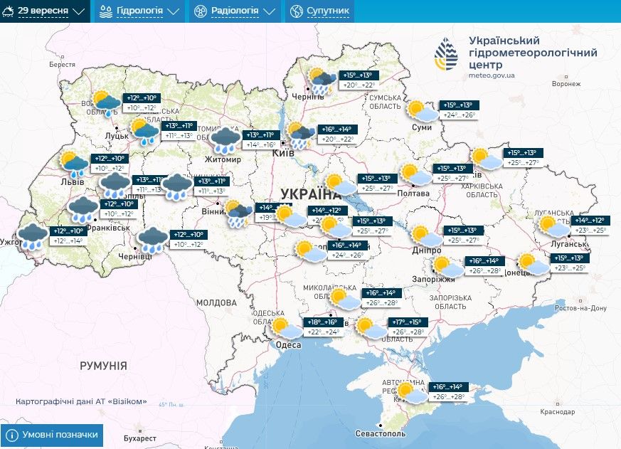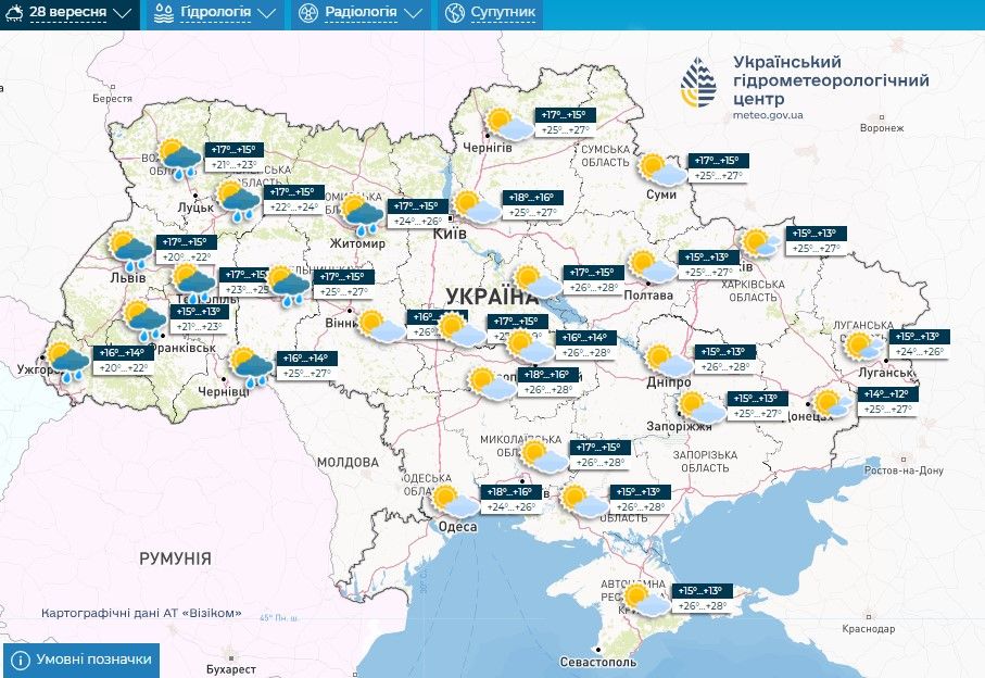 Прогноз погоди на 28 – 30 вересня / Скриншоти з Укргідрометцентру