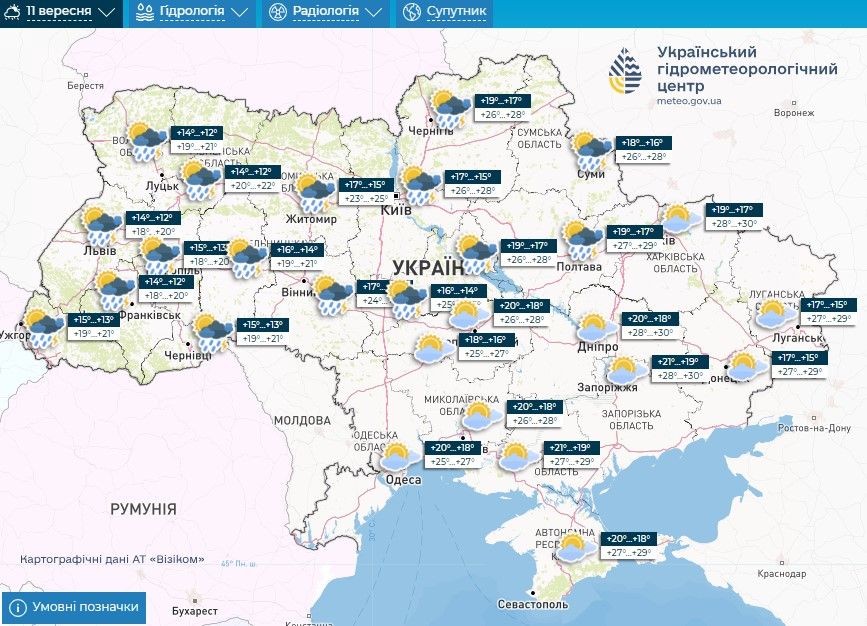 В Укргідрометцентрі зробили прогноз на три доби. Синоптики зазначили, що 10 вересня на Сході, Південному Сході та крайньому Заході, 11 вересня у західних, північних і центральних областях, 12 вересня в Україні подекуди короткочасні дощі, грози.