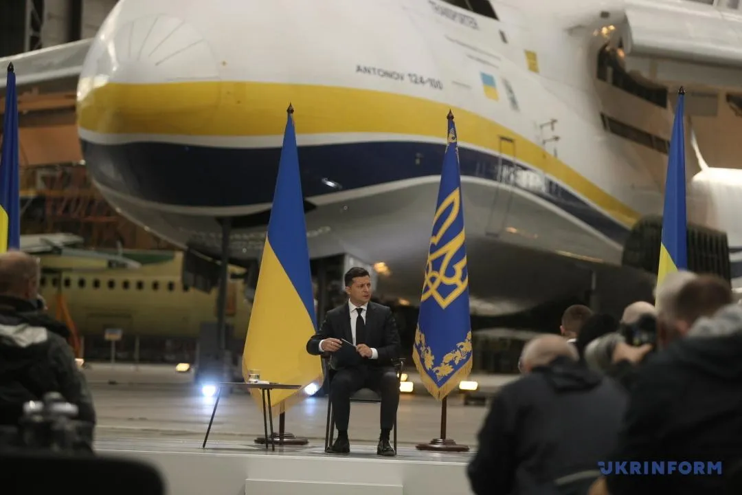 До речі, цьогоріч велику пресконференцію Зеленський теж символічно провів на ДП "Антонов". Президент сидів біля літака "Руслан", "Мрії" та нового фюзеляжу, який почали будувати 5 місяців тому – Ан-178.
