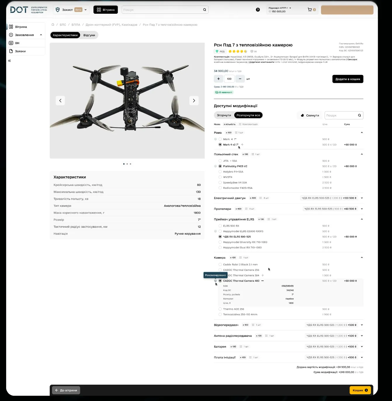 DOT-Chain Defence ми розвиваємо так, щоб у центрі завжди був військовий. Протягом наступних шести місяців 70% забезпечення БПЛА для війська відбуватиметься через систему. Водночас ми запускаємо "Конструктор дронів" – функціонал, якого безпосередньо прагнули бійці. Вони зможуть самостійно підбирати дрон під конкретну задачу на фронті – від камери до дальності польоту. Це означає, що рішення ухвалюються не в кабінетах, а безпосередньо на фронті. Там, де вони потрібні найбільше,