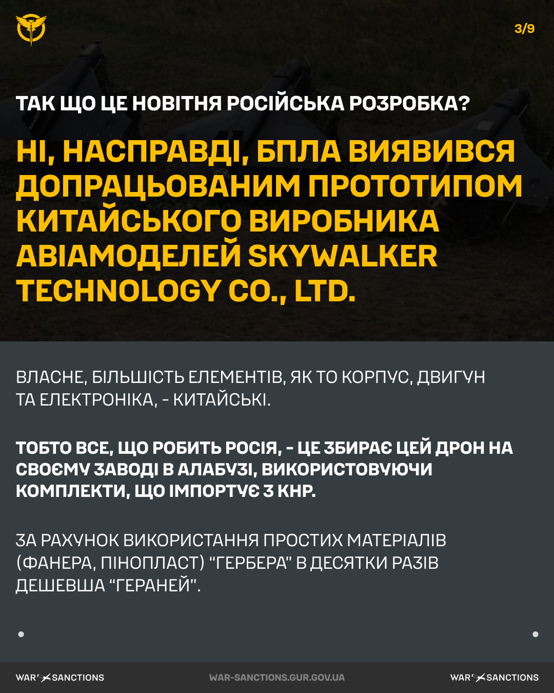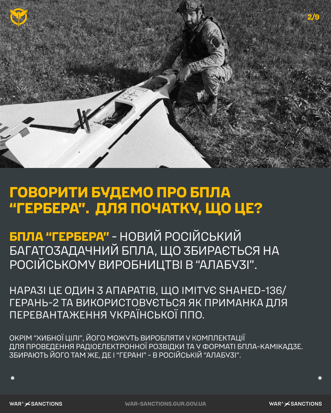 На сайті War & Sanctions написали, що дрони "Гербера":