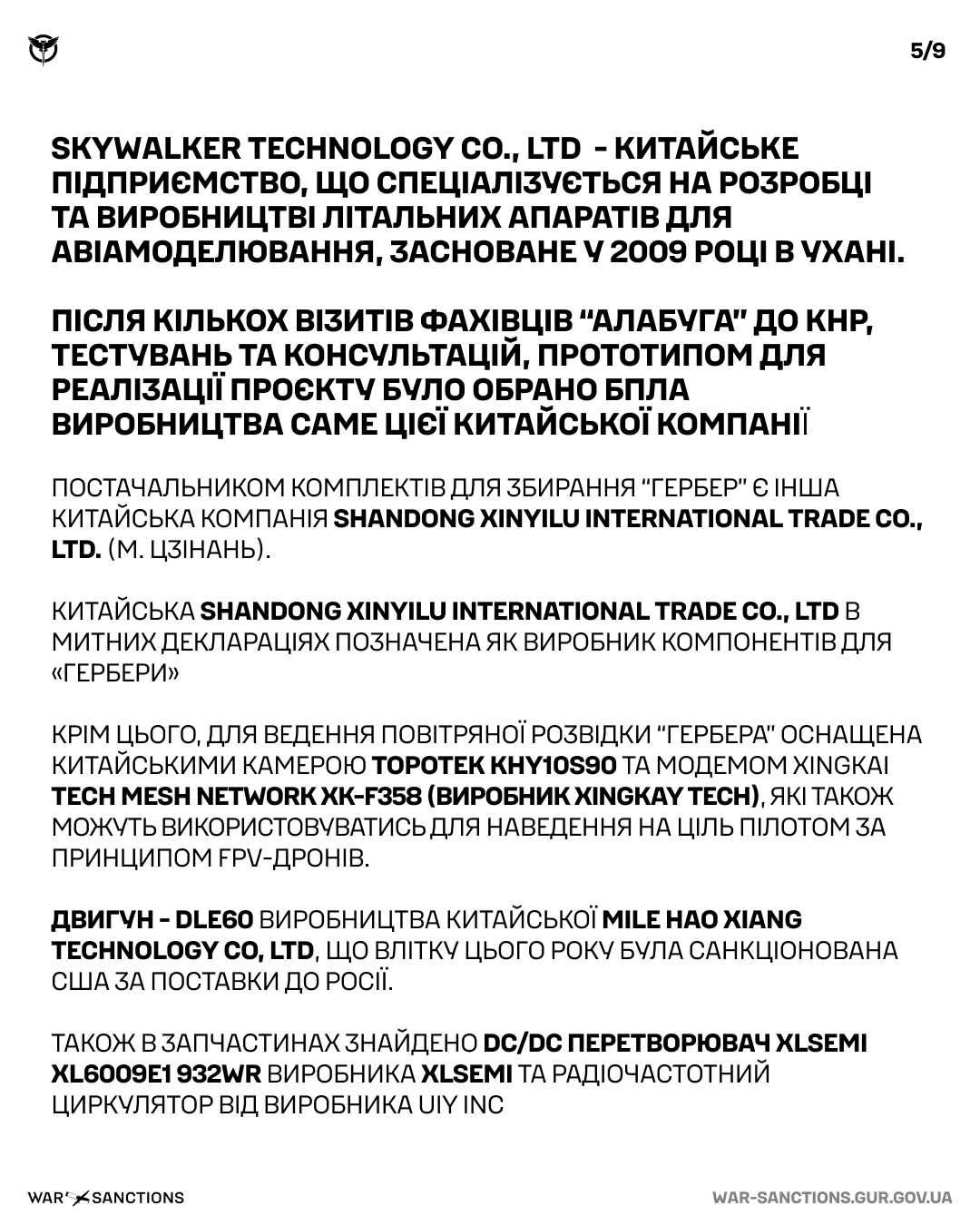- Mile Hao Xiang Technology Co, Ltd – виготовляє двигун DLE60. США влітку 2024 року наклали на компанію санкції;