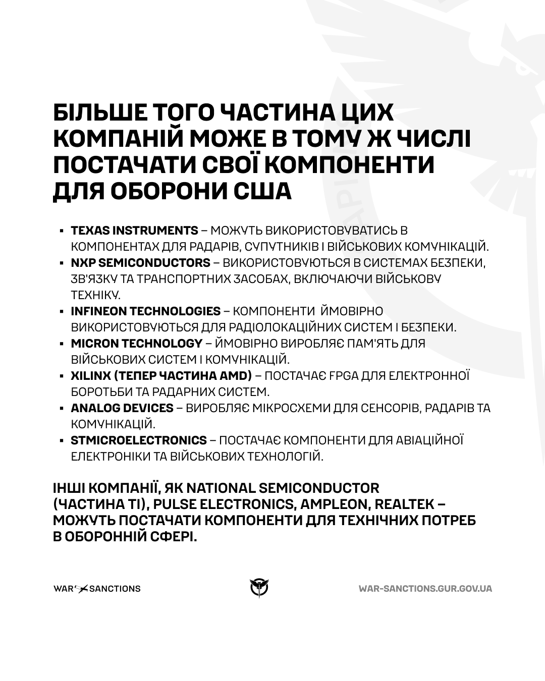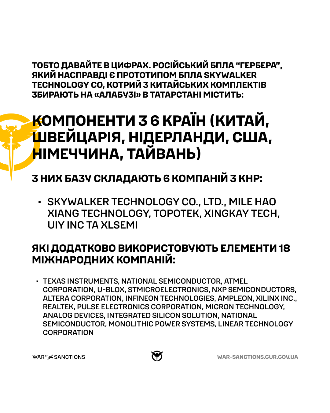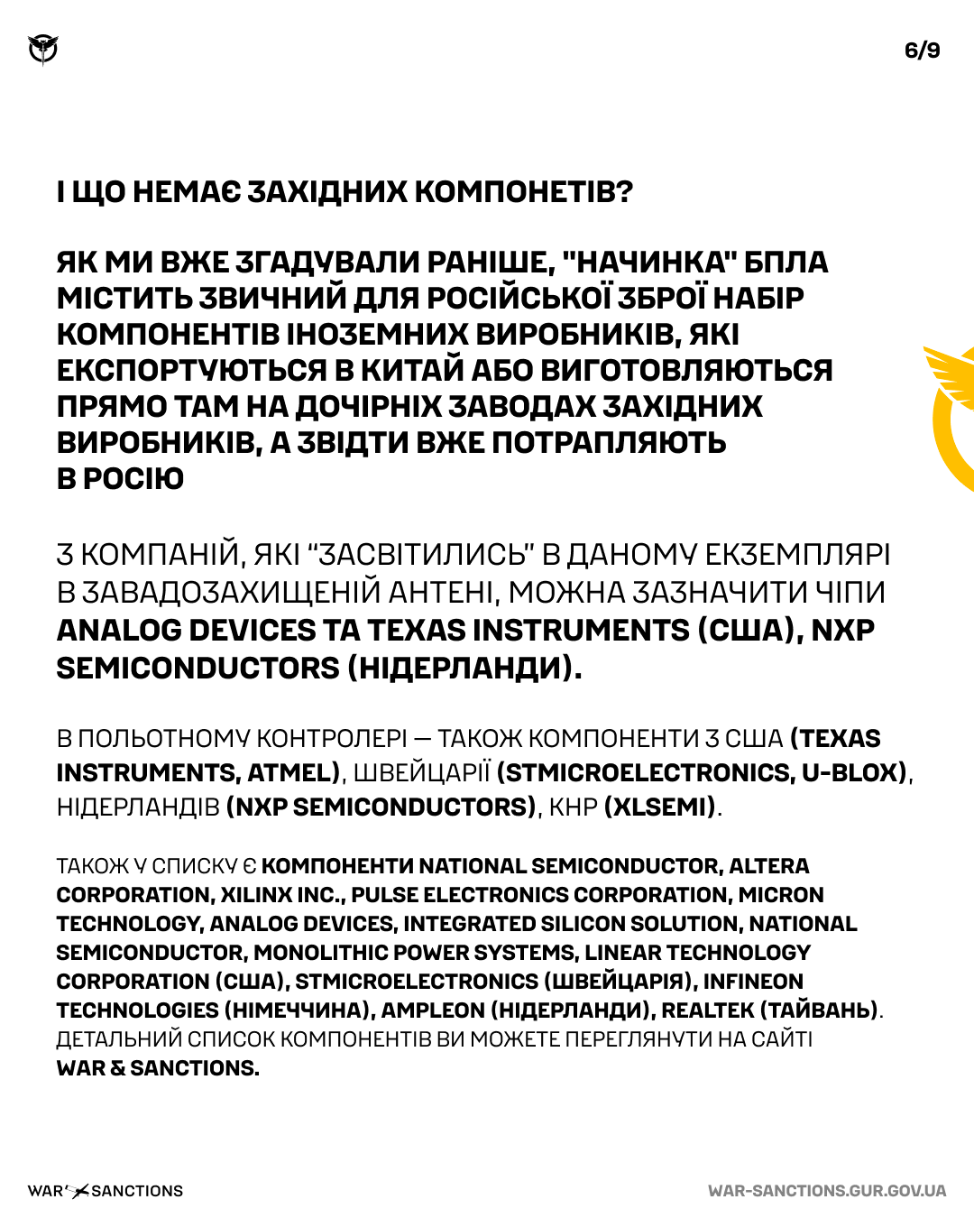 - UIY Inc – створює радіочастотний циркулятор, який знайшли у дроні;