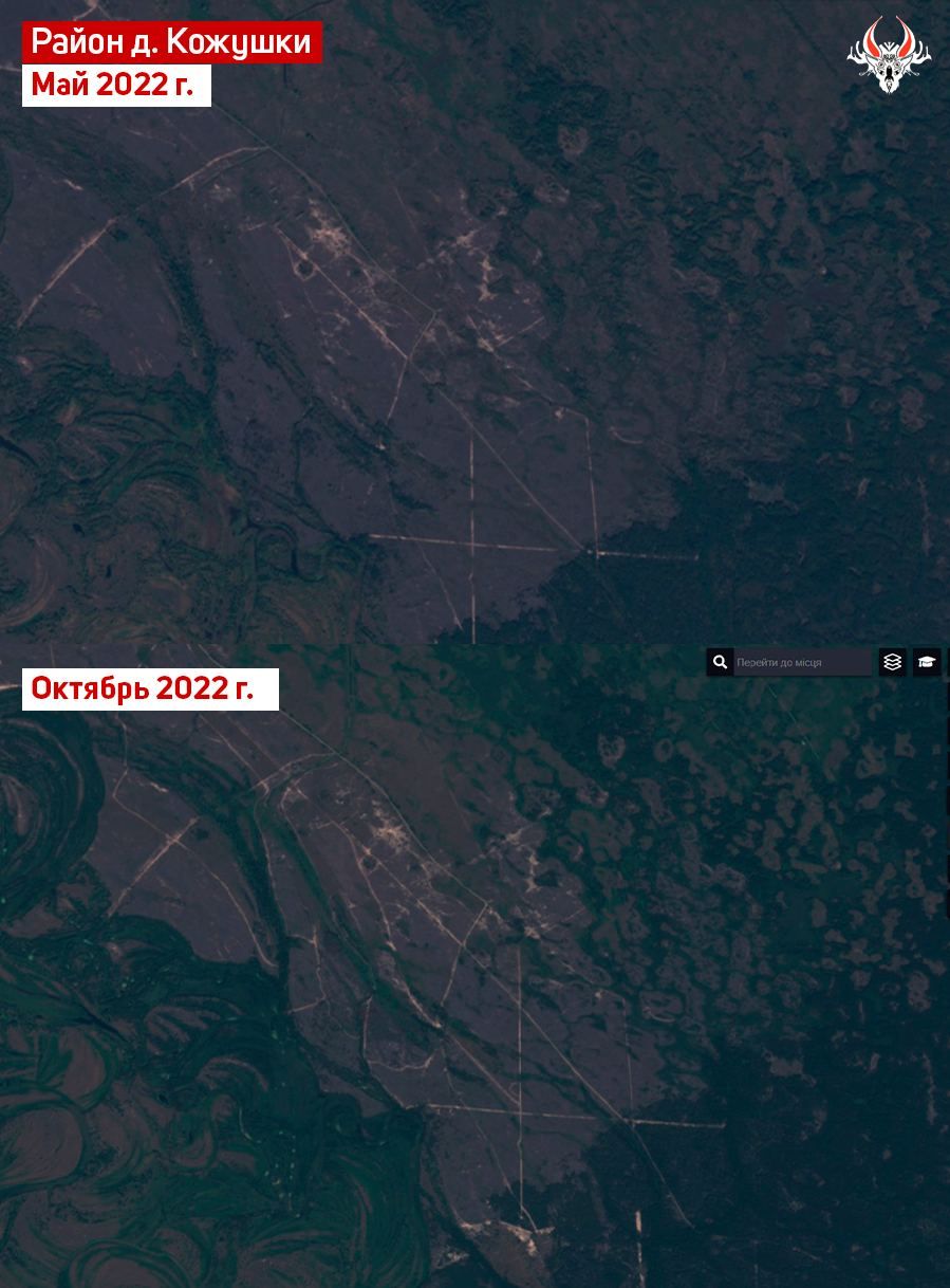 - Кожушки – також село в Хойнікському районі. Поруч чітко видно нові дороги, а значить, що там стала часто їздити техніка.