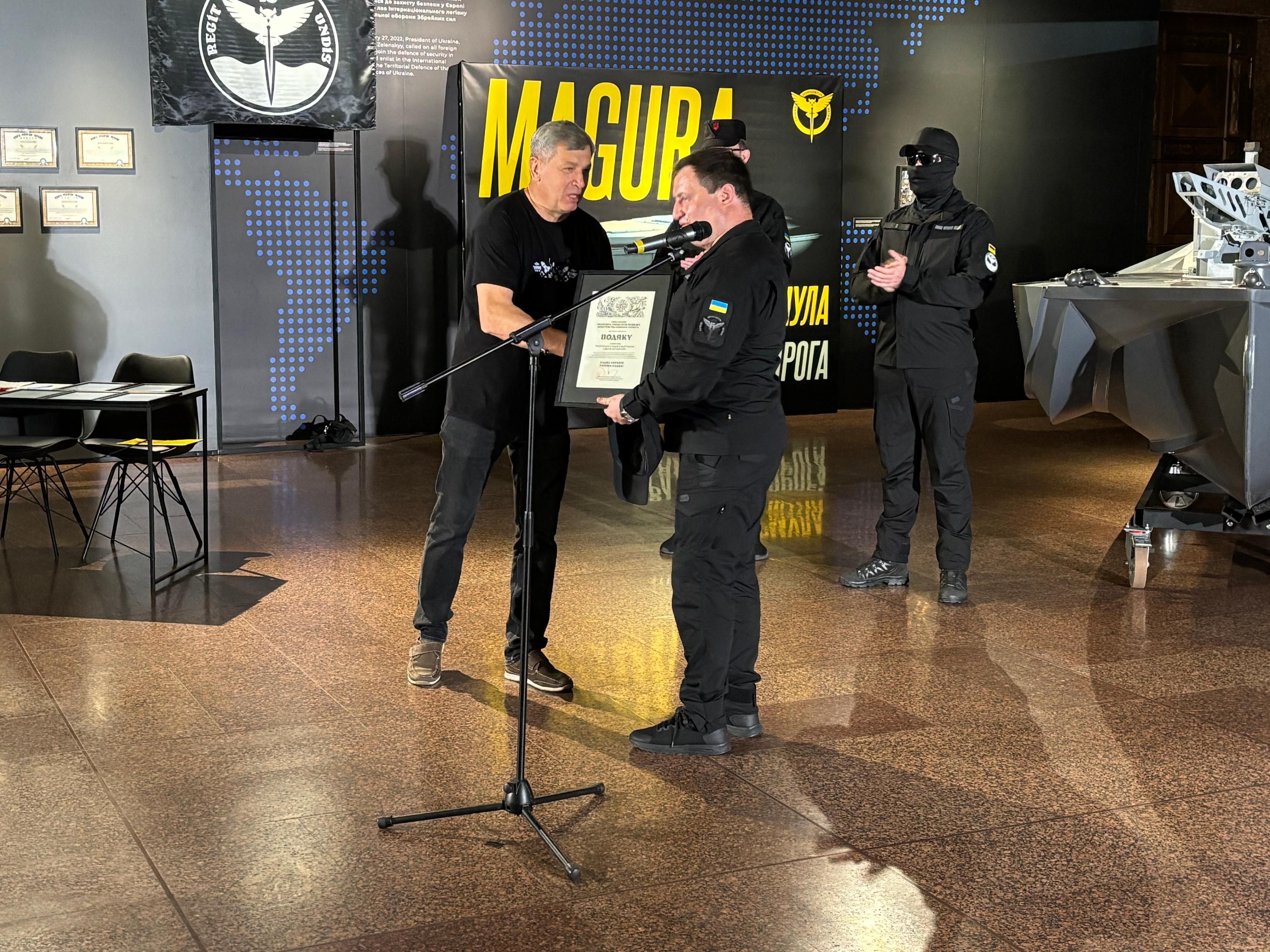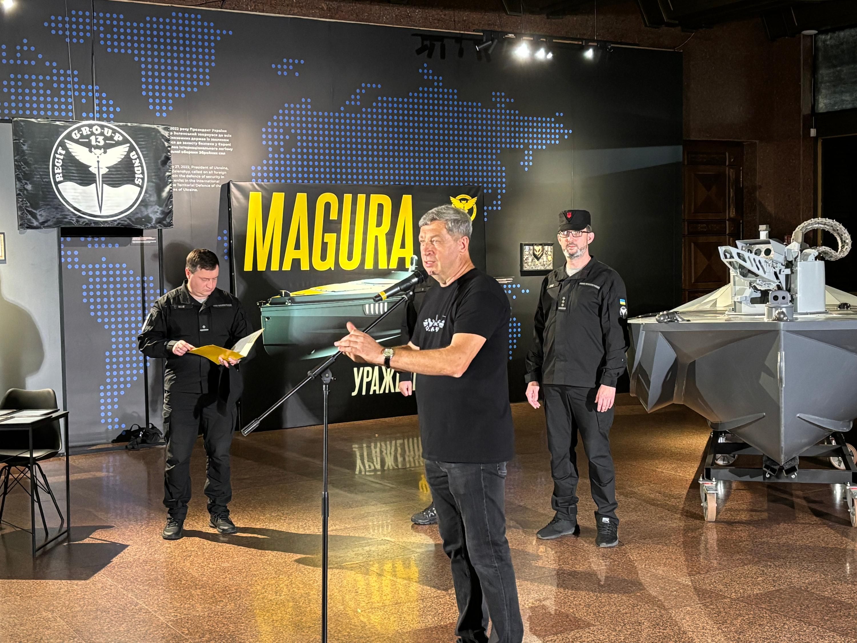 Андрій Юсов наголосив, що дрони "Магура" V-5, V-6, V-7, які передають до колекції музею, – це унікальні розробки, історія успіху українських науковців, інженерів та фахівців, зокрема й спецпідрозділу Group 13. Уже легендарні безпілотники дозволяють нищити ворога не лише на морі, але і в повітрі.