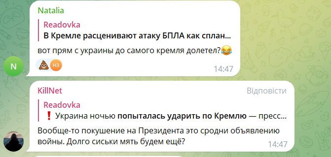Реакція росіян на "атаку дронів на Кремль" / Скриншоти